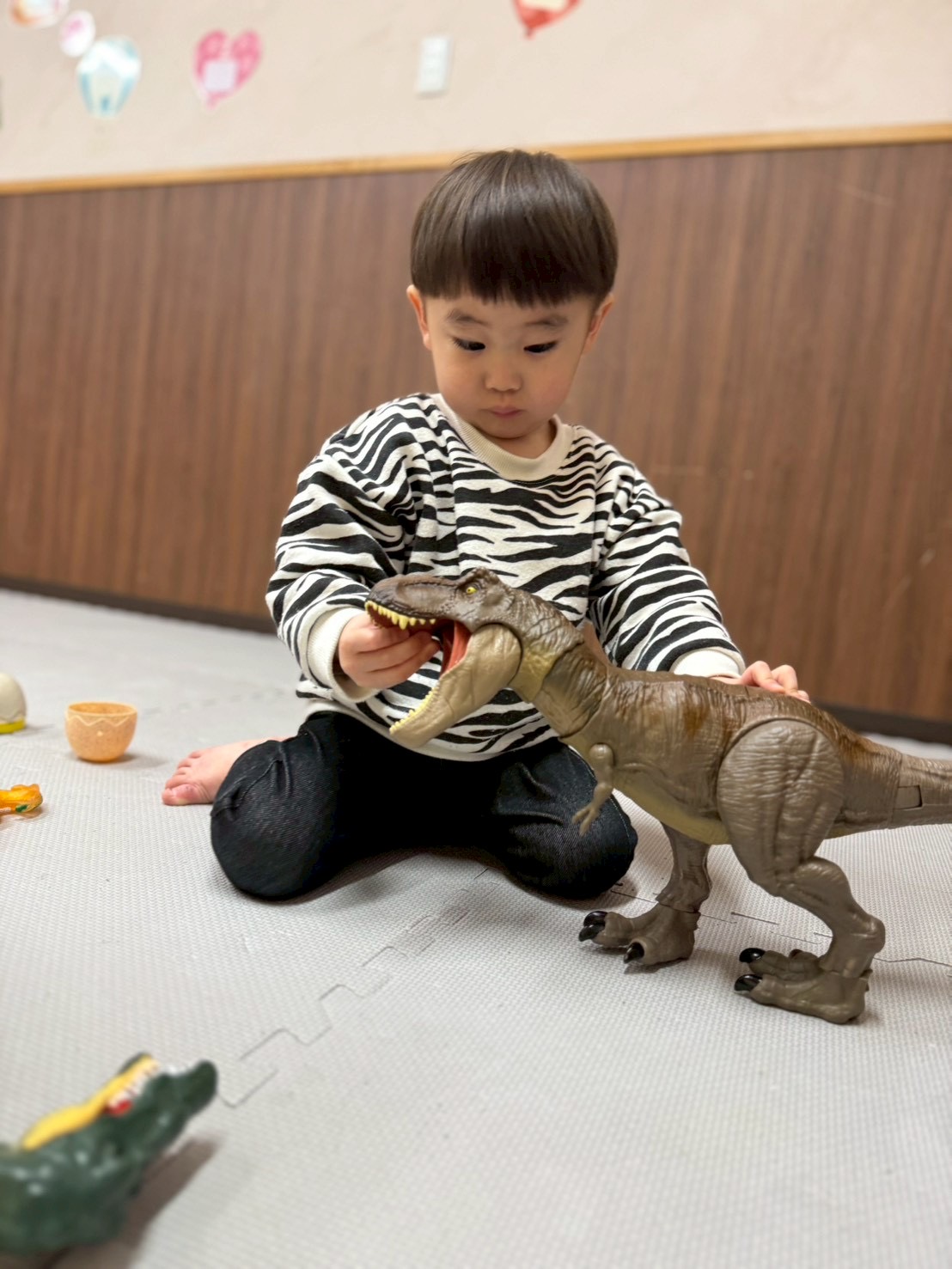 みんなと体を動かして遊んだ後は、大好きな恐竜🦖に